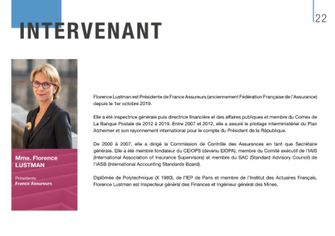France Assureurs Florence Lustman est Inspecteur général des Finances et Ingénieur général des Mines.