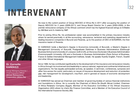 leading insurance companies in Burundi and Rwanda, up to the position of CEO of SONARWA, the then