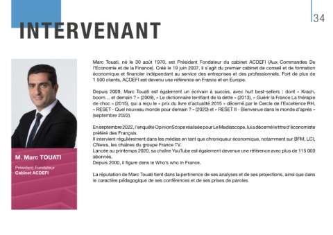 Cabinet ACDEFI La réputation de Marc Touati tient dans la pertinence de ses analyses et de ses projections, ainsi que dans