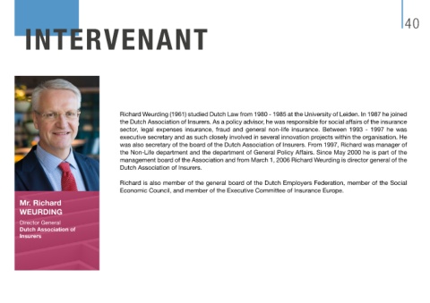 was also secretary of the board of the Dutch Association of Insurers. From 1997, Richard was manager of