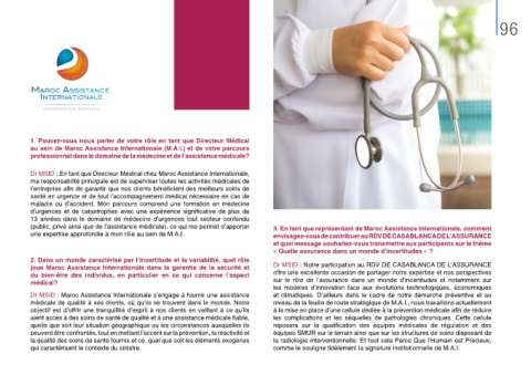 (public, privé ainsi que de l’assistance médicale), ce qui me permet d’apporter 3. En tant que représentant de Maroc Assistance Internationale, comment